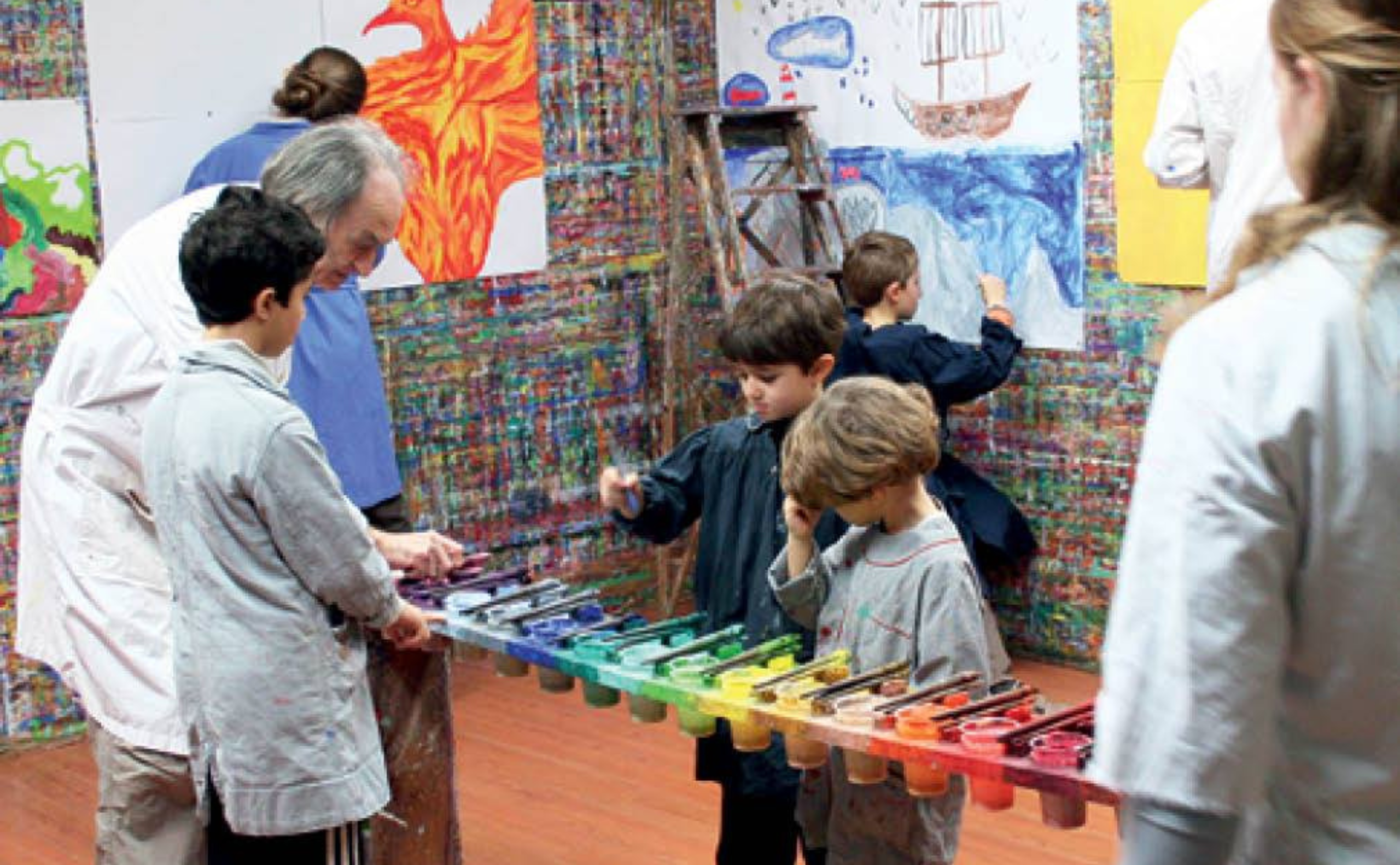 Arno Stern swoim zwyczajem czekał przy wejściu do pracowni malarskiej. Wszystkich miło witał, chwilę zagadywał i zapraszał do środka. Ta ciepła atmosfera od razu przeniosła się do środka, czyniąc to miejsce jeszcze żywszym.